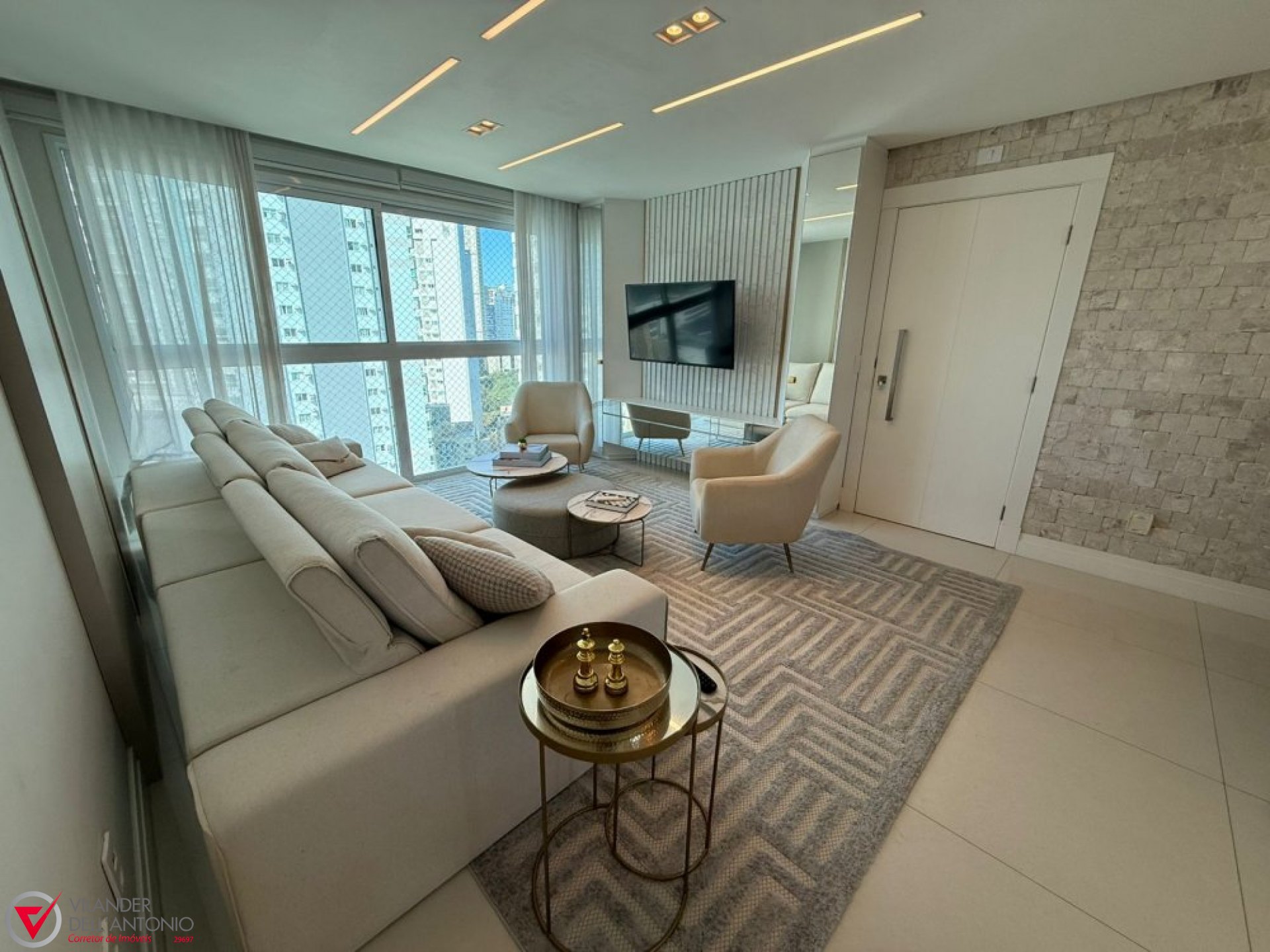 O apartamento tem 139m² privativos, é totalmente mobiliado e decorado com requinte e sofisticação. Conta com 3 suítes, living integrado para 3 ambientes, lavabo, cozinha, área de serviço e 2 a 3 vagas de garagem. São apenas 2 unidades por andar, garantindo exclusividade e conforto aos moradores.